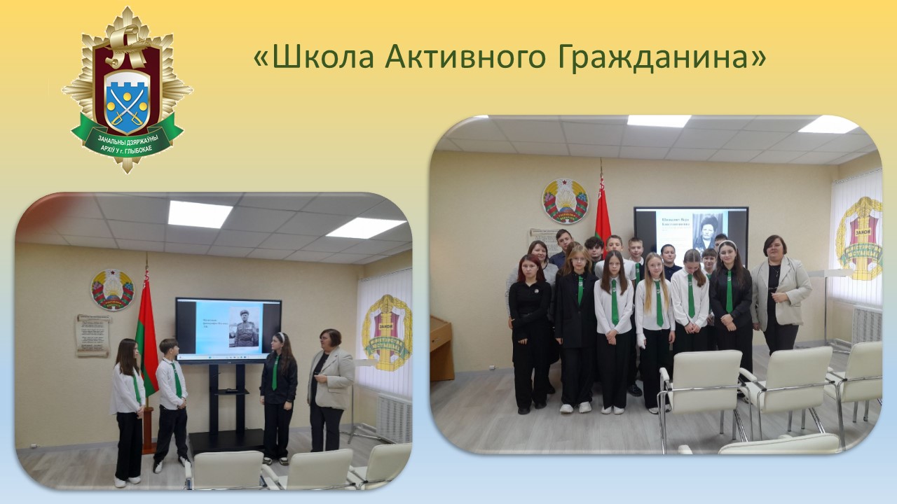 23 октября 2025 года в рамках информационно-образовательного проекта «Школа Активного Гражданина» и акции «Архивы – школе» государственное учреждение «Зональный государственный архив в г. Глубокое» посетили ученики 8 «А» класса ГУО «Средняя школа № 2 г. Глубокое имени П.Н. Свирко».