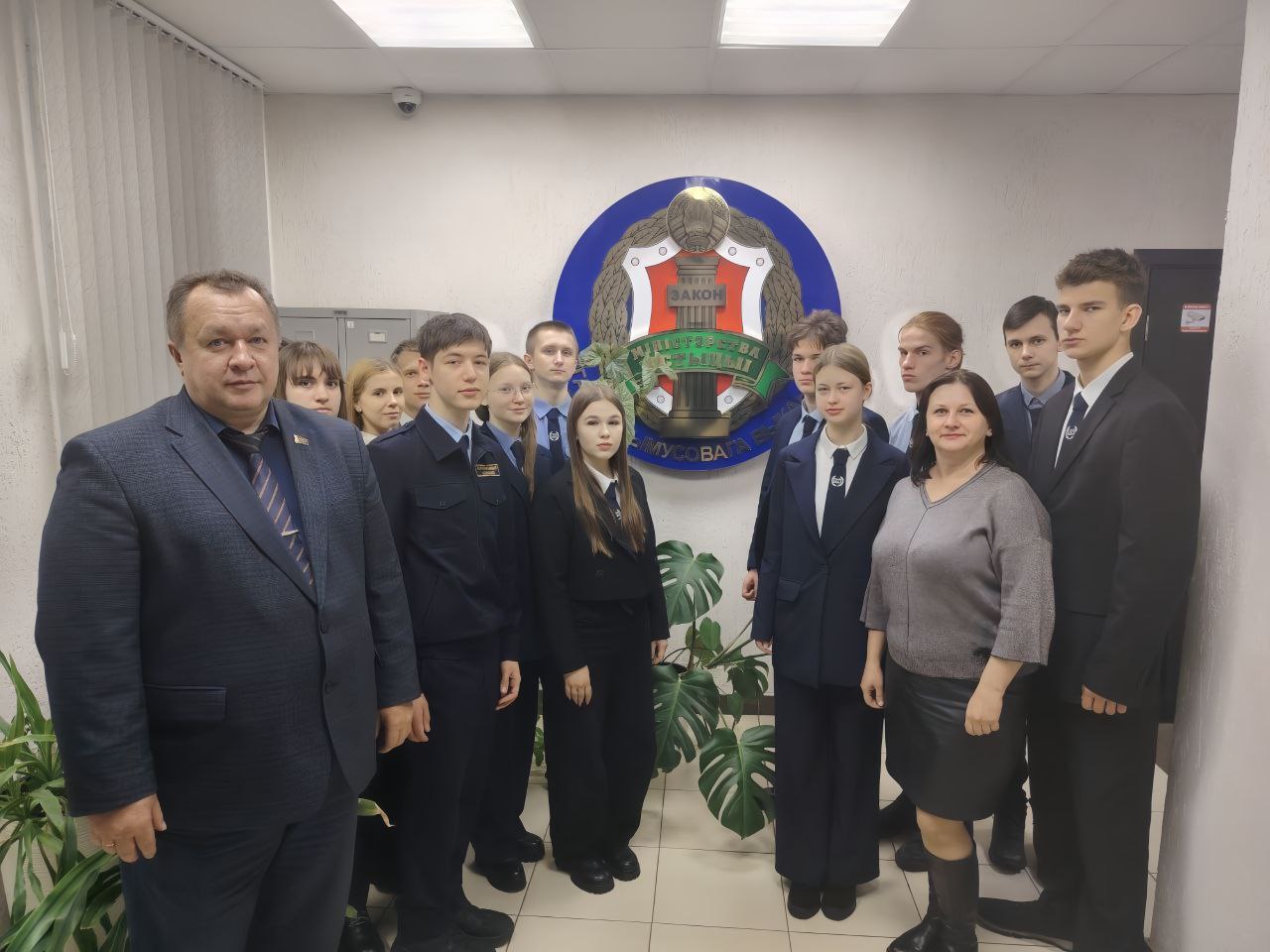 В фойе управления ребят встретили начальник главного управления юстиции Сергей Конопелько и начальник управления принудительного исполнения Николай Кабачевский.