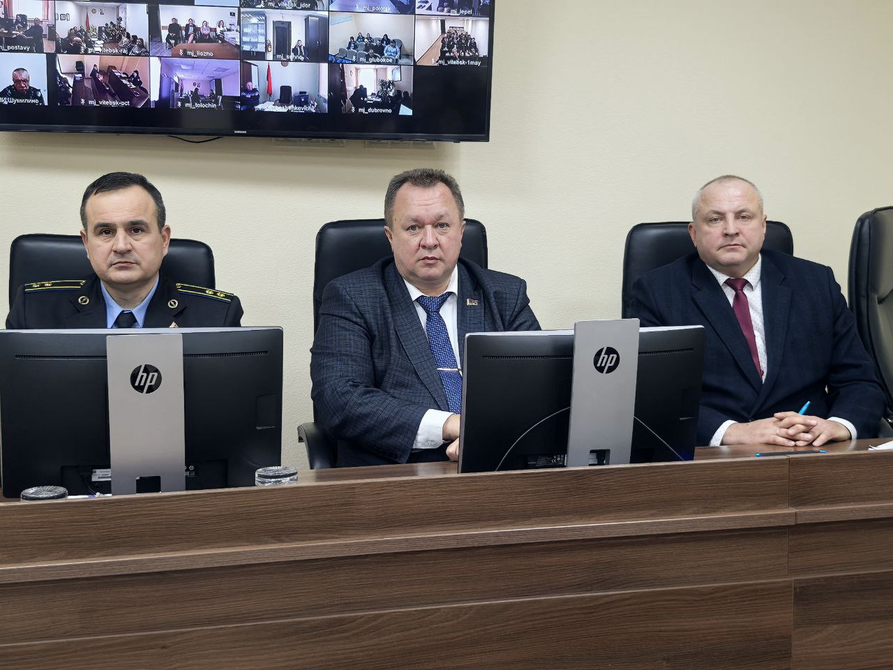 23 декабря 2025 года в главном управлении юстиции Витебского облисполкома под руководством начальника Сергея Конопелько состоялась рабочая встреча коллектива с сотрудниками Госавтоинспекции. В мероприятии, организованном в очном и дистанционном форматах, приняли участие работники главного управления юстиции, управления принудительного исполнения, территориальных отделов принудительного исполнения, а также руководство и водительский состав Витебского филиала РУП по оказанию услуг «БелЮрОбеспечение».