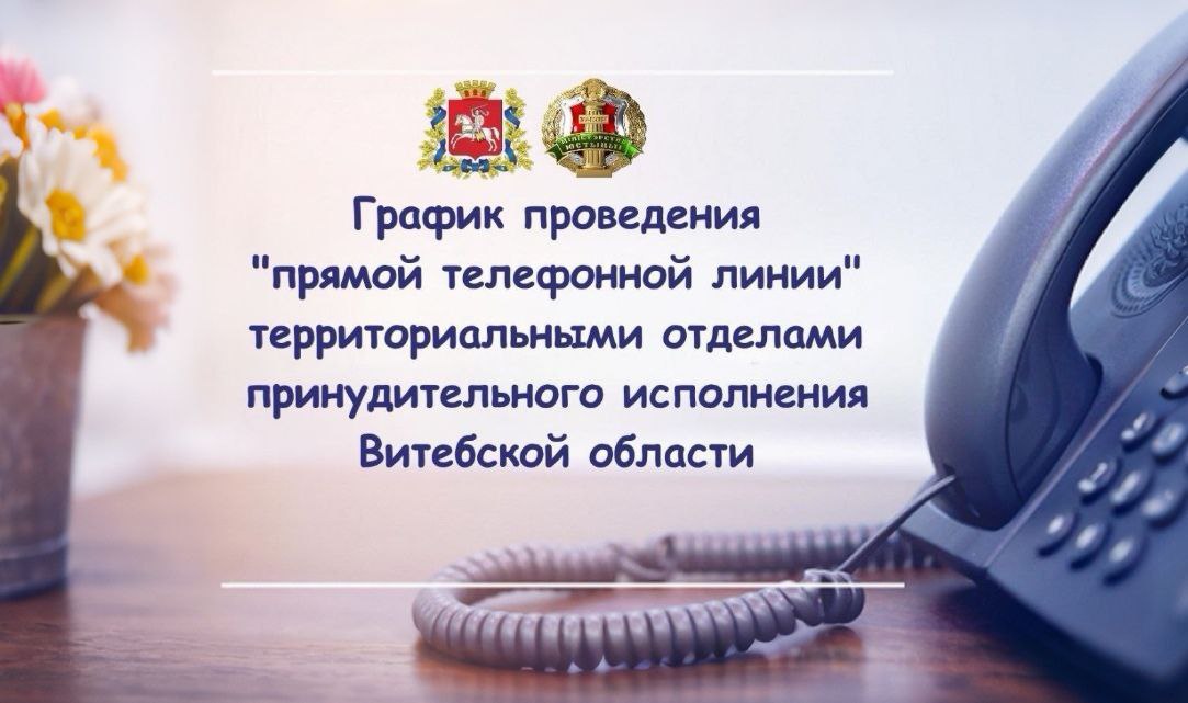 Руководители территориальных отделов принудительного исполнения Витебской области и их заместители проведут прямые телефонные линии, в ходе которых ответят на вопросы граждан и юридических лиц, связанные с исполнением исполнительных документов.