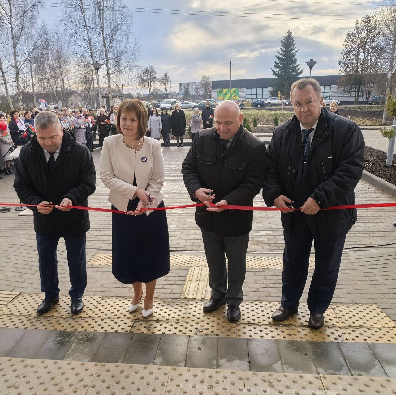 После теплых слов приветствия Сергей Петрович вместе с Вячеславом Викторовичем, главой района Дмитрием Станкевичем и начальником отдела загса Натальей Попелковой перерезал красную ленту.