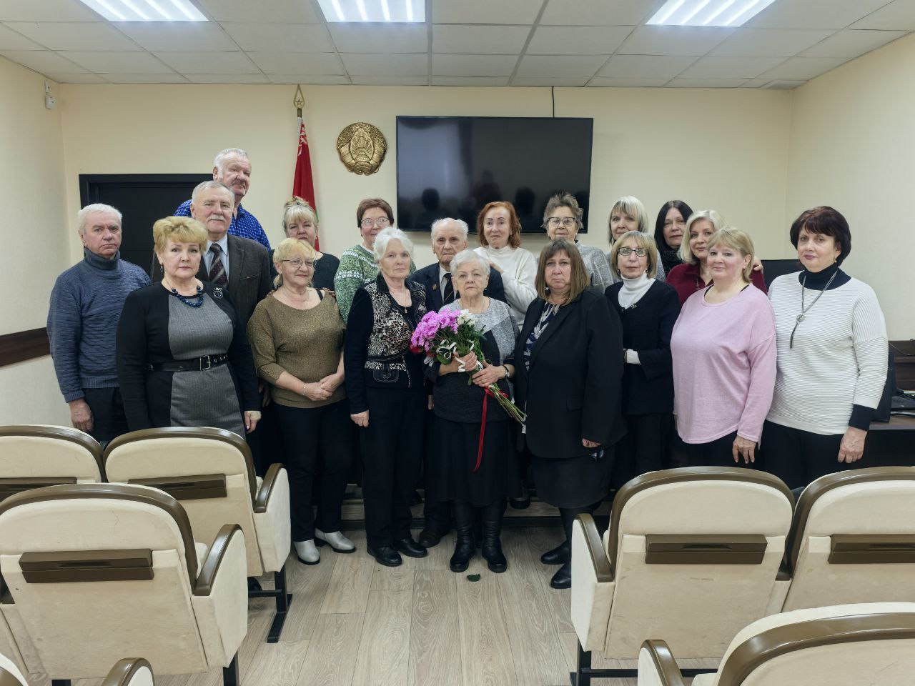 Завершилось мероприятие торжественным поздравлением Ларисы Ивановны Ламач с юбилеем – с 75-летием со дня рождения. Более 20 лет Лариса Ивановна возглавляла архив органов загса управления юстиции Витебского облисполкома. Поздравляя именинницу, Марина Быкова подчеркнула ее добросовестное отношение к делу и умение находить подход к людям, отметив: «Работа с архивом – это работа с судьбой человека». Поблагодарив за многолетний труд, юбиляру была вручена Почетная грамота главного управления юстиции Витебского облисполкома с пожеланиями крепкого здоровья, бодрости духа и оптимизма. К поздравлениям также присоединились все члены ветеранской организации.